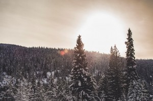 Sun rising over the mountains near BC
